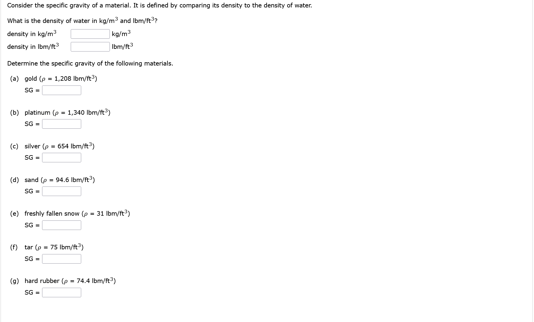 Solved What is the density of water in kg/m3 and lbm/ft3 ?